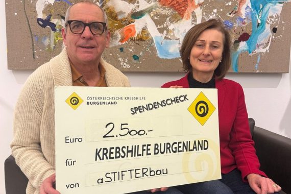 Dieses Jahr fiel die Wahl auf die Krebshilfe Burgenland, die sich über eine großzügige Spende von 2.500 Euro freuen durfte. Alfred Stifter, Geschäftsführer von aSTIFTERbau, erklärte: „Es ist uns eine Herzensangelegenheit, in der Vorweihnachtszeit einen wertvollen Beitrag zu leisten. Wir freuen uns sehr, dass wir die Arbeit der Krebshilfe Burgenland unterstützen dürfen, die Betroffene sowie ihre Familien in der herausfordernden Zeit der Erkrankung begleitet.“